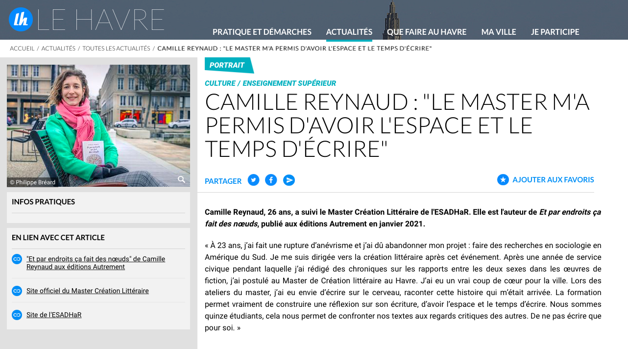 [Portrait] LH Le Havre Seine Métropole Publié parCamille Reynaud23 février 202123 février 2021Publié dansActualité littéraire Partager : Cliquer pour partager sur X(ouvre dans une nouvelle fenêtre) X Cliquez pour partager sur Facebook(ouvre dans une nouvelle fenêtre) Facebook J’aime chargement… Similaire